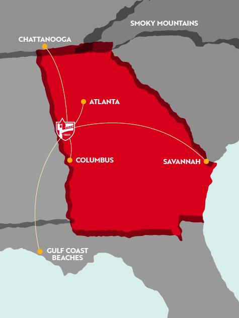 This sweet spot of Georgia enjoys all four seasons and is surrounded by lakes and mountains, making it a popular choice for students, as well as for families and corporations. And Atlanta, one of the country’s most popular and growing cities, is only an hour’s drive away.